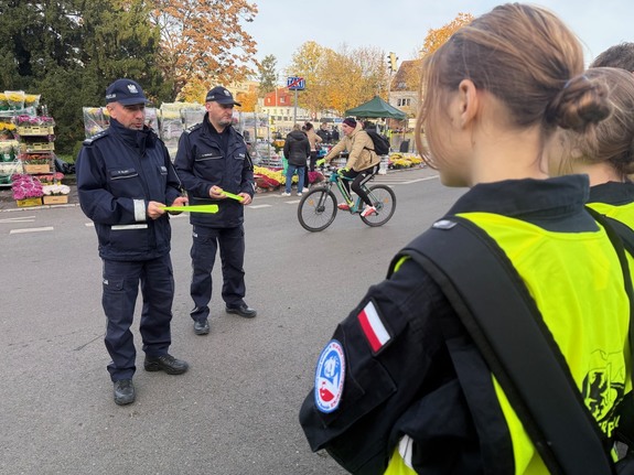Policjanci z drogówki rozdawali odblaski- bezpieczeństwo pieszych priorytetem przed Świętem Zmarłych