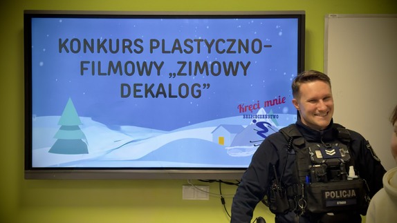 Funkcjonariusze Komisariatu Wodnego Policji w Szczecinie odwiedzili uczestników półkolonii organizowanych przez Szkółkę Pływania Olimpijczyk w Szkole Podstawowej nr 59 im. Bolesława Krzywoustego w Szczecinie. Spotkanie odbyło się w ramach ogólnopolskiej akcji „Kręci mnie bezpieczeństwo w zimie”.