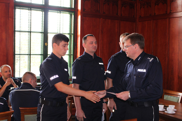 Mundurowi zostali wyróżnieni za wzorową postawę podczas realizacji zadań w służbie, między innymi za : zatrzymanie osób posiadających i handlujących środkami odurzającymi, udaremnienie prób samobójczych oraz aktywny udział w zabezpieczeniu imprez na terenie naszego województwa jak i całego kraju w ramach Szczytu NATO i operacji policyjnej " Przymierze".