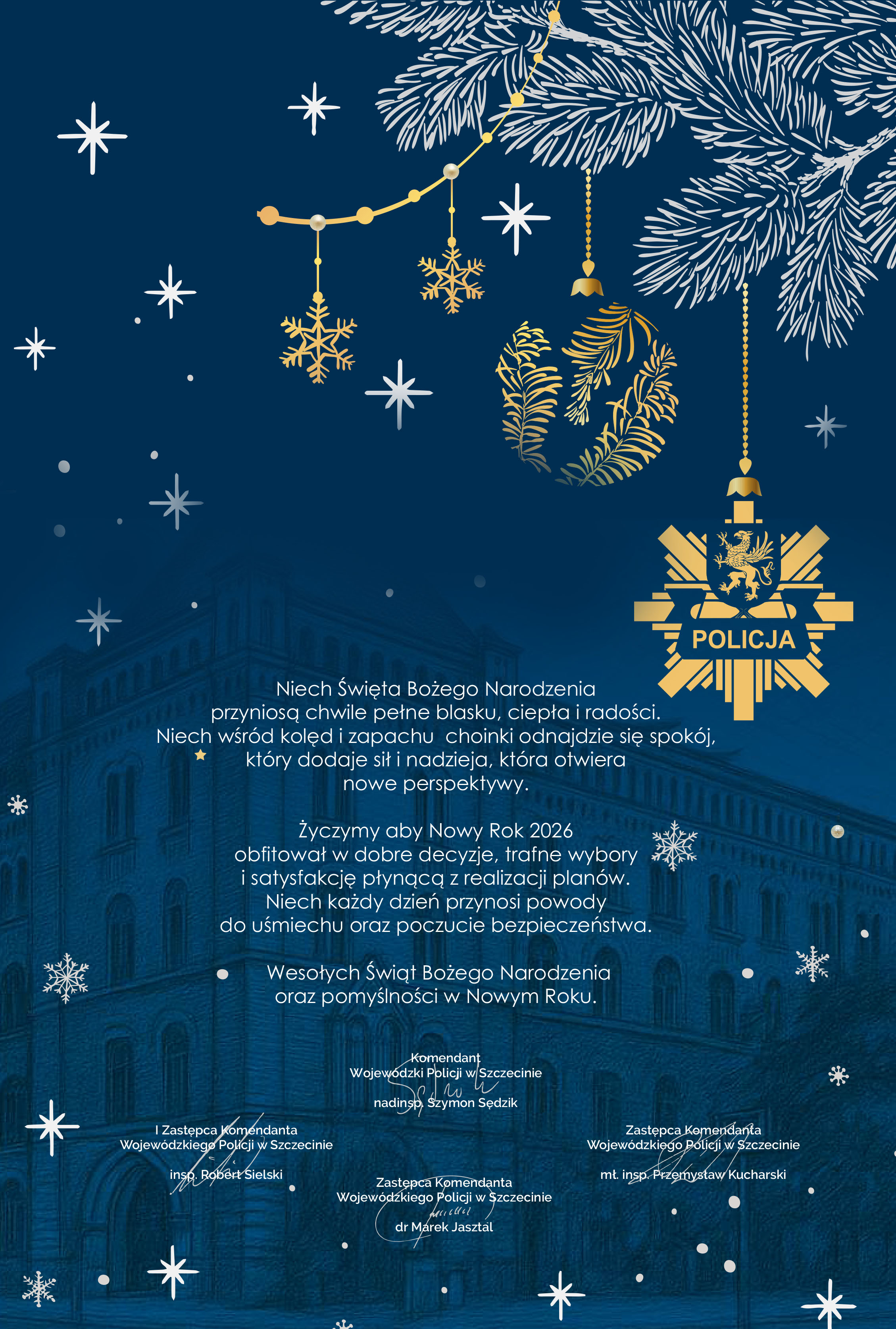 Życzenia świąteczne Komendanta Wojewódzkiego Policji w Szczecinie Data publikacji 23.12.2025 Powrót Drukuj