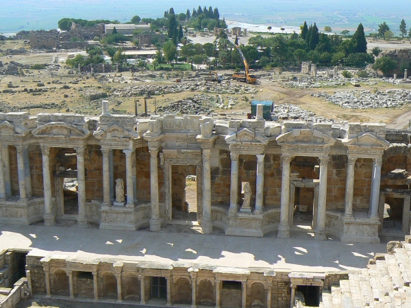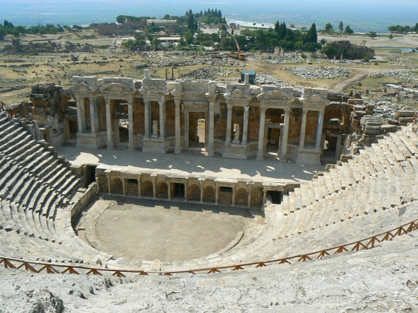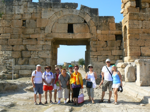 1. Podróż z Goleniowa do Antalyi odbyliśmy w nocy czeskimi liniami lotniczymi Travel Service w ciągu 3 godzin. Wczesnym rankiem 120 km jechaliśmy autobusem do Alanyi, pierwszego miejsca naszego pobytu. Oczywiście od razu po śniadaniu wyruszyliśmy na zwiedzanie jednego z najwspanialszych cudów natury PAMUKKALE. Do Pamukkale z Alanyi jest 370 km. Spędziliśmy tu cały dzień, włócząc się wśród ruin Hierapolis, trawertynów, taplając w ciepłych oczkach wodnych i podziwiając jedyne w swoim rodzaju widoki oraz odpoczywając w cieniu palm. Zwiedzaliśmy ruiny HIERAPOLIS, miasta założonego w II w.p.n.e. przez władcę Pergamonu Eumenesa II, a w nim teatr rzymski - jeden z piękniejszych teatrów zrekonstruowanych w Turcji. Pamukkale powstał dzięki obecności 17 źródeł termalnych, z których na powierzchnię ziemi wydobywa się woda o tem. od 35 aż do 100 o Celsjusza. Woda spływa w dół pod zbocze góry Cökelez, pozostawiając po sobie wapienne osady i wypełniając powstające po nich osady. Ten proces trwa nieprzerwanie od 14 tys. lat. Obecnie wysoki na 160 m obszar pokryty osadami ma długość 2700 m, a jego szerokość to 600 m. W ten sposób powstało w Pamukkale ogromne naturalne kąpielisko, a zdrowotne właściwości wód termalnych, znane już w okresie antycznym, przyciągały do Pamukkale licznych kuracjuszy. Z czasem powstała tu cała miejscowość uzdrowiskowa, znana jako Hierapolis. Wapienne tarasy Pamukkale położone są na terenie parku narodowego i objęte są ochroną przez UNESCO. Kąpiel w wodach termalnych Pamukkale ma przynosić wiele korzyści zdrowotnych. Intensywny dzień na łonie natury.