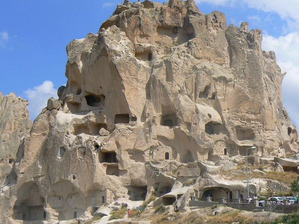 5. Przejazd do KAPADOCJI słynącej z księżycowego krajobrazu i skalnych kościołów. Kapadocja to legendarna kraina. Jest tu po prostu pięknie. Niesamowite twory natury i ludzkich rąk, jakie można tu podziwiać, powstały na skutek skamienienia tofu "wulkanicznego" popiołu wyrzuconego 3 mln lat temu przez okoliczne wulkany. Najpiękniejsze formy podziwialiśmy w skansenie GÖREME - kompleks skalnych kościołów (Muzeum Göreme), kryjących wspaniałe freski, wzgórze ÜCHISAR, skąd rozpościera się panoramiczny widok na Kapadocję. Niesamowite wrażenie zrobiła na nas panorama na miasteczko Göreme - Salkin Tepesi, Dolina Miłości - Ask Vadisi, skalny komisariat żandarmerii - Paşabaga oraz tufowy wielbłąb - Devrent. Wieczorem wspaniała zabawa podczas "Tureckiej Nocy" - piękny program artystyczny, gdzie mieliśmy możliwość oglądania: Efe - taniec wojenny, wieczór panieński (noc henny) i konkursy, weselne tańce, tańce czarnomorskie, tańce kaukaskie no i taniec brzucha.