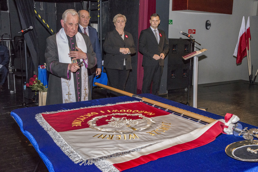Sztandar został poświęcony przez ks. prałata Henryka Ozgę ze stargardzkiej kolegiaty. Spotkanie było okazją do wręczenia podziękowań, odznaczeń i dyplomów. Uroczystość w SCK poprowadził kom. Łukasz Famulski, naczelnik wydziału ruchu drogowego Komendy Powiatowej Policji w Stargardzie i jej były rzecznik.