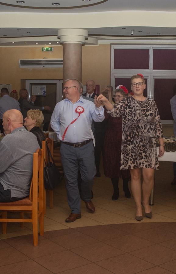 Następnie był występ artystyczny uczestników spotkania, a mianowicie wszyscy uczestnicy zatańczyli Poloneza. Po tańcu było wspólne zdjęcie dokumentujące uroczyste spotkanie. Zwieńczeniem spotkania była uroczysta kolacja, wszyscy rozkoszowaliśmy się daniami serwowanymi przez lokal. Podczas kolacji trwały dyskusje na tematy związane ze Świętem Niepodległości oraz codziennym życiem emerytów.