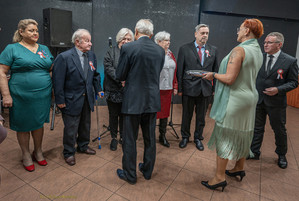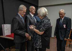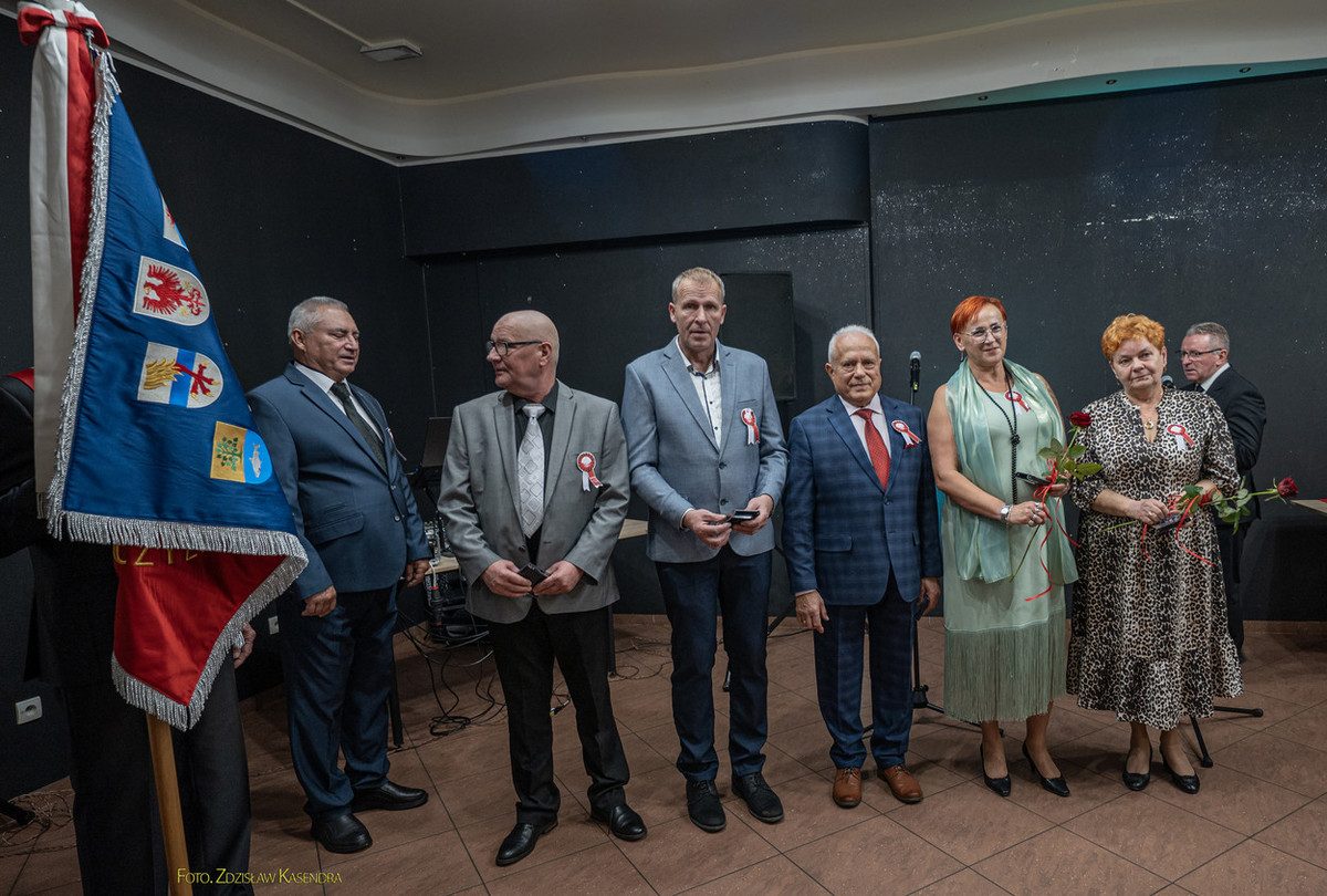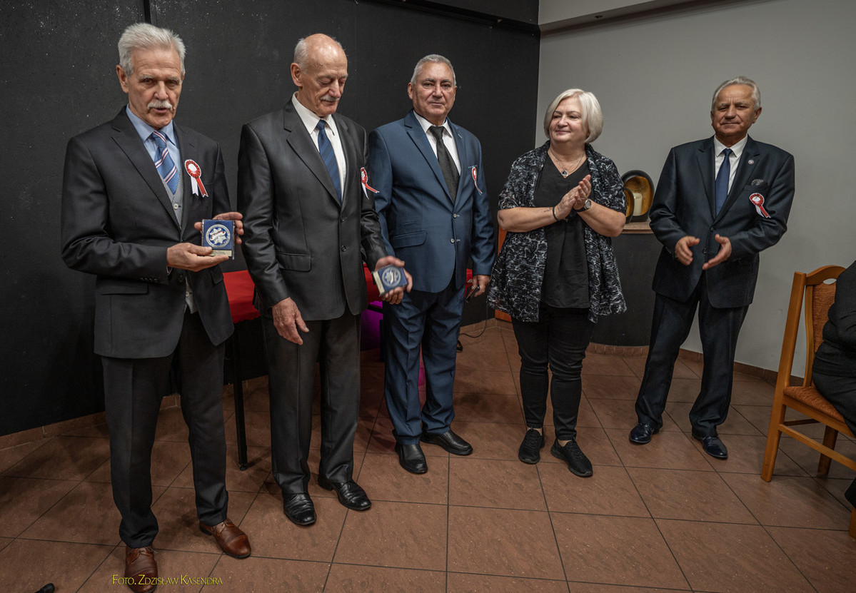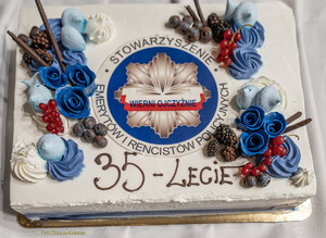Nie zabrakło wspomnień, serdecznych gratulacji i życzeń dalszej owocnej pracy społecznej. Po części oficjalnej wyprowadzono Sztandar Stowarzyszenia. Następnie uczestnicy spotkania zasiedli do wspólnego poczęstunku wspaniałych dań przygotowanych przez zawsze gościnny lokal Mamma Mia. Uroczystość uświetnił piękny tort jubileuszowy oraz lampka szampana. Przy dźwiękach muzyki serwowanej przez niezastąpionego kol. Tomka Szostaka i w miłej atmosferze nie zabrakło wspólnych rozmów, wspomnień i radości ze wspólnego świętowania.